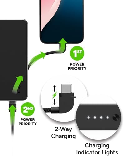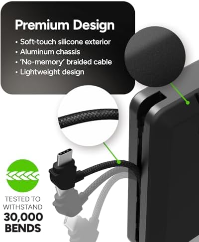 – **Integrated Cables:** No more fumbling with multiple cables! This power bank includes built-in USB-C and Lightning cables, allowing you to charge your devices without the hassle of carrying extra accessories.